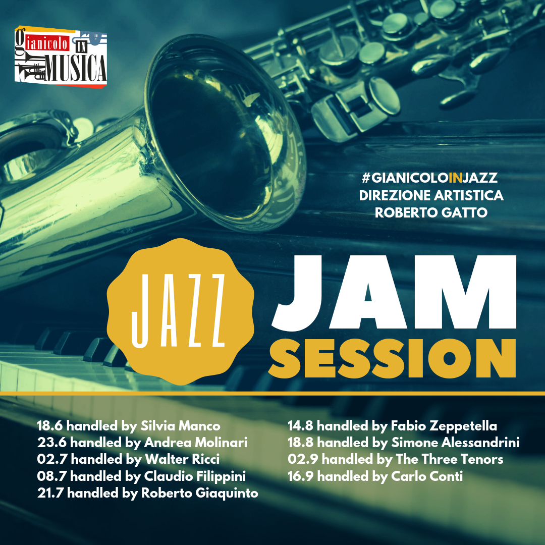 Alcune delle serate di #gianicoloinjazz saranno caratterizzate, dopo il concerto in cartellone, da ‘Jam Session’ aperte, dirette ed impreziosite dai band leader di ogni serata. I nomi sono di grande effetto. Da Roberto Giaquinto a Max Ionata, da Fabio Zeppettela a Walter Ricci e poi Silvia Manco, che inaugura il giro di jam il 18 Giugno, e ancora Daniele Scannapieco, Claudio Filippini, Simone Alessandrini, Carlo Conti, Emanuele Cisi. Qui si riunisce una bella fetta di Top Jazz made in Italy! Non mancheranno a sorpresa le ‘bacchette magiche’ del grande Roberto Gatto.