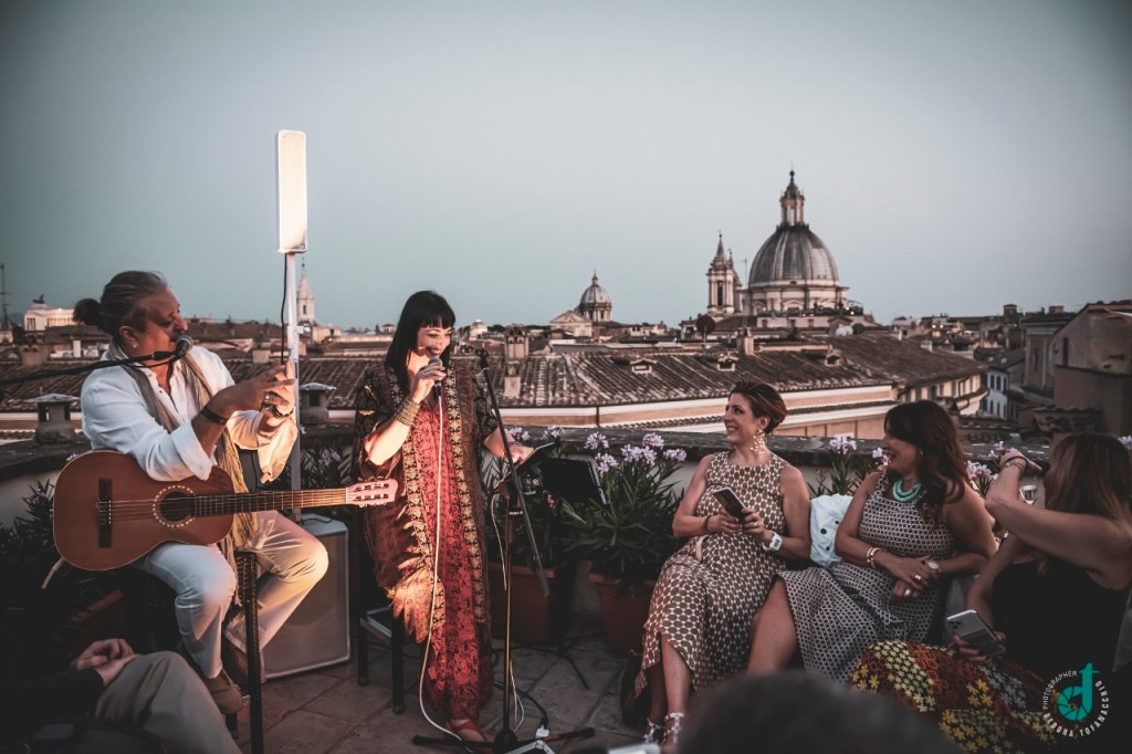 Da una posizione privilegiata, spettacolo immerso nella bellezza della città. Roma, come scenografia, nel momento più affascinante del giorno. Musica, racconti e aneddoti per compiere un viaggio nella canzone di Roma, dalle sue origini ai giorni nostri, per conoscere i dettagli storici di brani che fanno parte del DNA di ogni romano da sempre.