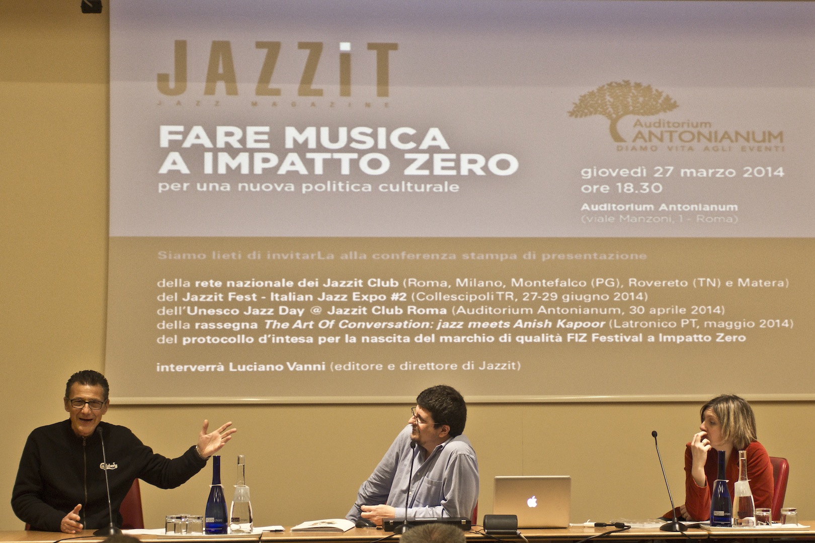 Un ringraziamento speciale va all’Auditorium Antonianum che ospita la maratona. ALESSANDRA FONTICOLI, Direzione e coordinamento eventi: “L’Auditorium Antonianum di proprietà dei frati francescani ha aperto le sue porte con grande entusiasmo al Jazzit Club Roma. L’Auditorium Antonianum, tramite il Jazzit Club, si colloca fra i luoghi di incontro a Roma dove “FARE CULTURA”: la cultura come attenzione verso le persone a esprimere e a donare sé stessa. La formula “open source” è stata vincente e ci siamo uniti nel dimostrare che si può fare cultura attraverso la collaborazione di tutti e senza finanziamenti pubblici attraverso un vero e proprio scambio di doni: Luciano Vanni, editore e direttore di Jazzit, ha donato l’idea e la sua rete di contatti, noi abbiamo donato gli spazi, gli artisti la loro musica e il pubblico la loro fondamentale presenza! Non ultimi, ma per primi, i dipendenti della struttura che hanno permesso ciò perché si sono messi a disposizione gratuitamente! Nessuno straordinario è stato pagato! Il successo della stagione concertistica del Jazzit Club Roma risiede nell’essere diventati grandi con poco”.