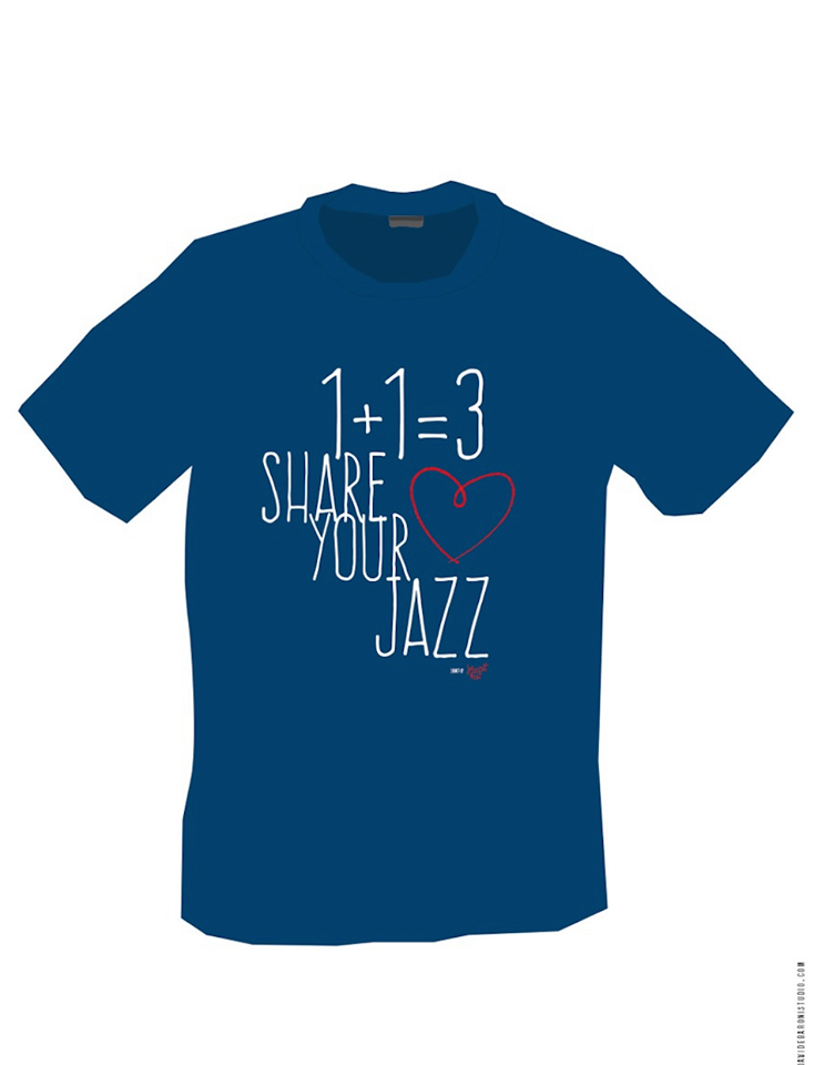 Il progetto grafico del merchandising Jazzit Fest#3, firmato da Davide Baroni, comunica la formula 1 + 1 = 3 per rappresentare i vantaggi che nascono dallo stare assieme e dal condividere princìpi, valori e obiettivi: acquista le T-shirt e le bag